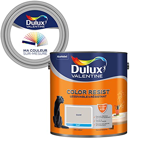 Dulux Valentine Color Resist Pièces à Vivre - Peinture Intérieure Murs, Plafonds, Boiseries - Lessivable et Résistante - Couleur : Galet Clair - 2,5 L - 5351564