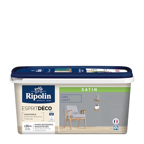 RIPOLIN - Peinture Intérieure Multi-Supports – Murs, Boiseries & Radiateurs – Ultra-Couvrante – Lessivable – Application Facile – Ecolabel - Satin - 2,5L - Galet
