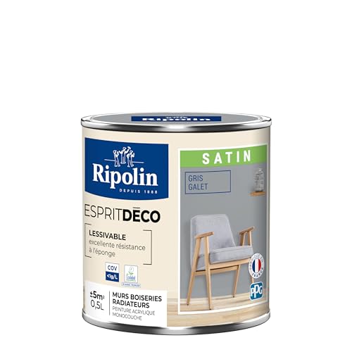 RIPOLIN - Peinture Intérieure Multi-Supports – Murs, Boiseries & Radiateurs – Ultra-Couvrante – Lessivable – Application Facile – Ecolabel - Satin - 0,5L - Galet