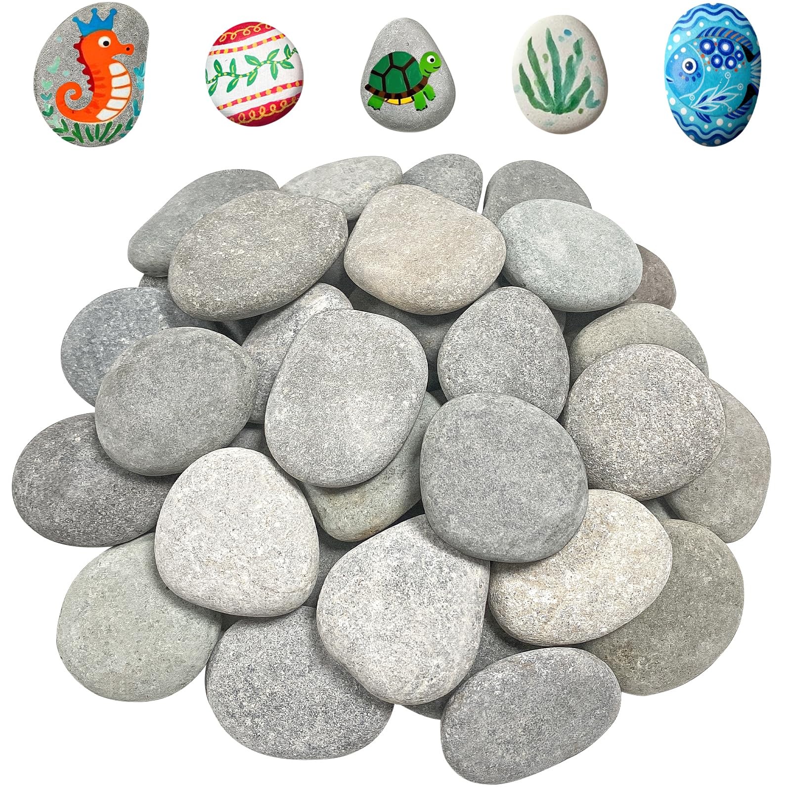 EIMZU Lot de 50 galets lisses peints - Galets plats à peindre - Grands galets plats à peindre - Pour peinture, art, peinture colorée et décoration