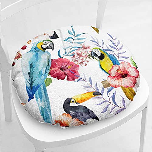 Hiseng Coussin de Chaise Coussins de Siège, Ronde Tatami Respirant Fleur Oiseau Schéma Coussins de Chaise Galette de Chaise pour Salle à Manger/Bureau/Canapé,40x40cm (Perroquet)