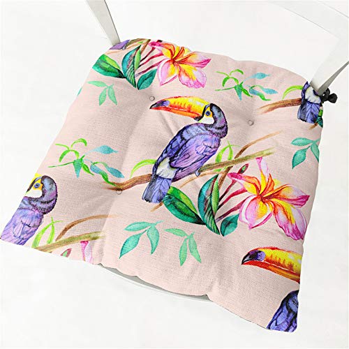 Hiseng Lot de 2 Coussin de Chaise Coussins de Siège, Carré Tatami Respirant Fleur Oiseau Schéma Coussins de Chaise Galette de Chaise pour Salle à Manger/Bureau/Canapé, 40x40cm (Toucan)