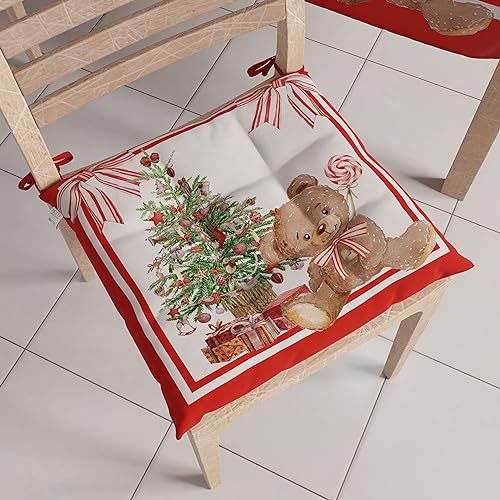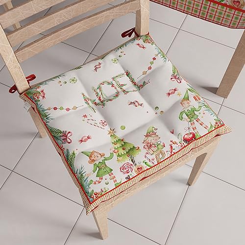PETTI Artigiani Italiani - Lot de 6 Galettes de Chaise de Noël 40x40cm, Coussins de Chaises pour Intérieur et Extérieur avec Attaches, Décoration de Noël, 100% Made in Italy