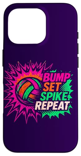 Volley-Ball Comic Pop Art Bump Set Spike Repeat Gameday Coque pour iPhone 16 Pro