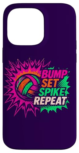 Volley-Ball Comic Pop Art Bump Set Spike Repeat Gameday Coque pour iPhone 14 Pro Max