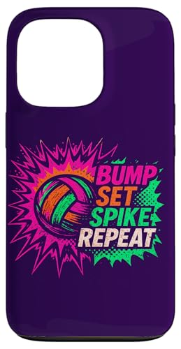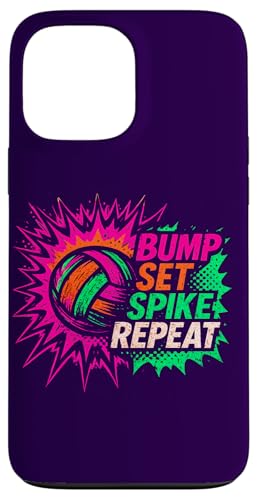 Volley-Ball Comic Pop Art Bump Set Spike Repeat Gameday Coque pour iPhone 13 Pro Max