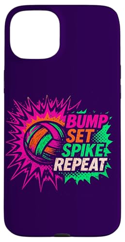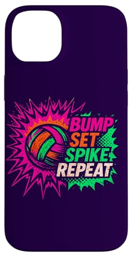Volley-Ball Comic Pop Art Bump Set Spike Repeat Gameday Coque pour iPhone 15 Plus
