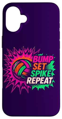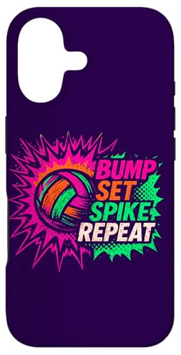 Volley-Ball Comic Pop Art Bump Set Spike Repeat Gameday Coque pour iPhone 16