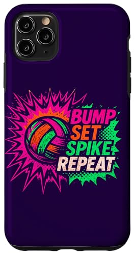 Volley-Ball Comic Pop Art Bump Set Spike Repeat Gameday Coque pour iPhone 11 Pro Max
