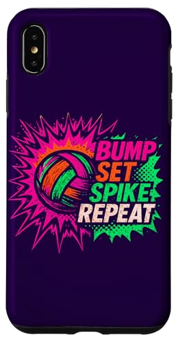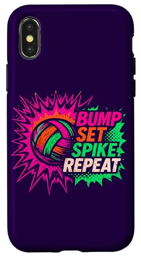 Volley-Ball Comic Pop Art Bump Set Spike Repeat Gameday Coque pour iPhone XS Max