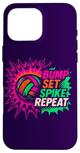 Volley-Ball Comic Pop Art Bump Set Spike Repeat Gameday Coque pour iPhone 16 Pro Max