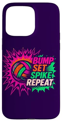 Volley-Ball Comic Pop Art Bump Set Spike Repeat Gameday Coque pour iPhone 15 Pro Max