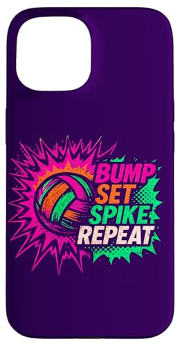 Volley-Ball Comic Pop Art Bump Set Spike Repeat Gameday Coque pour iPhone 15
