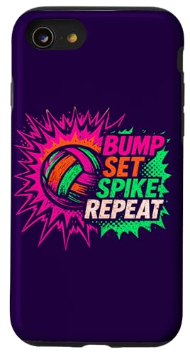 Volley-Ball Comic Pop Art Bump Set Spike Repeat Gameday Coque pour iPhone SE (2020) / 7/8