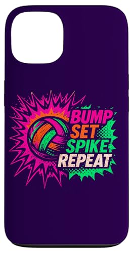 Volley-Ball Comic Pop Art Bump Set Spike Repeat Gameday Coque pour iPhone 13