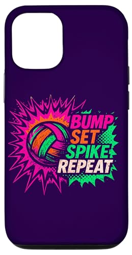 Volley-Ball Comic Pop Art Bump Set Spike Repeat Gameday Coque pour iPhone 12/12 Pro