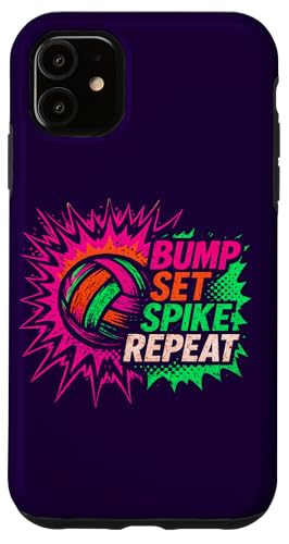 Volley-Ball Comic Pop Art Bump Set Spike Repeat Gameday Coque pour iPhone 11