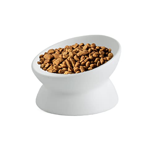 YLWX Gamelle Chat Surélevée en Céramique Bol for Chat Incliné Gamelle Surelevee for Chat Protège-Cou Bouche Inclinée Gamelles Chat Inclinée Anti Vomissement (Size : Blanc)