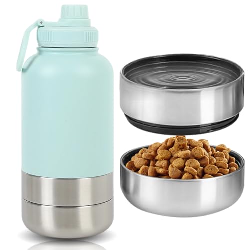 Gourde pour chien - Pour les déplacements - 950 ml - Bouteille d'eau isotherme en acier inoxydable avec gamelle et gamelle - Bouteille isotherme portable pour chien - Pour les voyages, l'extérieur