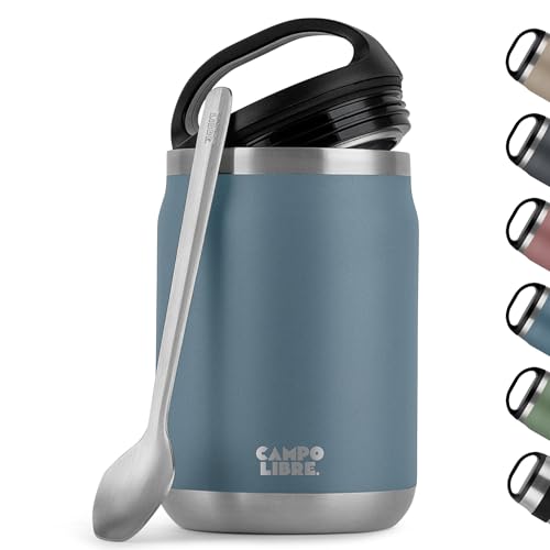 Campo Libre.® Lotta – Thermos Alimentaire Chaud & Froid – Boite Repas Isotherme avec Cuillère – Gamelle Isotherme Adulte ou Bébé, Travail, Bureau, École, Camping – Facile à transporter. Bleu, 600ml