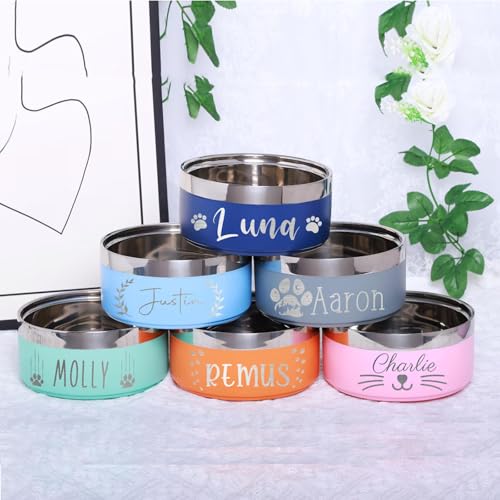 Gamelles personnalisées pour chien - Gamelle isotherme en acier inoxydable avec nom | Bols personnalisés pour chiens et chats | Cadeaux uniques pour animaux de compagnie (7 x 16 cm)