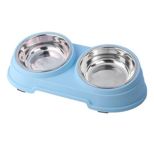Double gamelle pour chats et chiens, gamelles en acier inoxydable avec design amovible et base antidérapante, facile à nettoyer pour chiots et animaux de compagnie de taille moyenne (24 x 13 x 4,5 cm