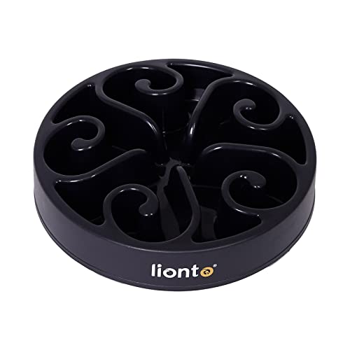 lionto Gamelle Anti-glouton pour Chiens et Chats, Ø 20 cm, Hauteur 5 cm, capacité jusqu'à 450 g, gamelle antidérapante en Plastique Alimentaire, résistant au Lave-Vaisselle jusqu'à 100°, Noir