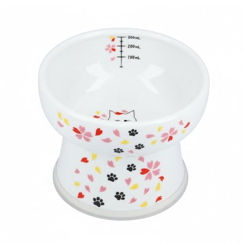 Necoichi Gamelle surélevée pour Chat avec Lignes de Mesure, Passe au Lave-Vaisselle et au Micro-Ondes, Vendeur n°1 au Japon (Cherry Blossom Limited Edition, Regular)