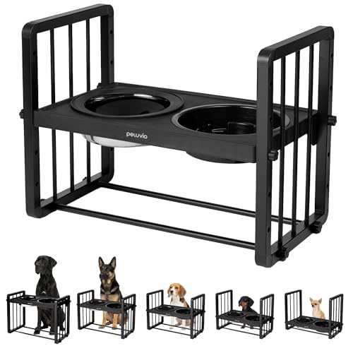 Peluvio Levee Gamelle surélevée pour Chien Gamelle pour Chien réglable en Hauteur sur 5 Niveaux avec Support métallique pour gamelle Slow Feeder 1100 ML, gamelle à Eau 1450 ML