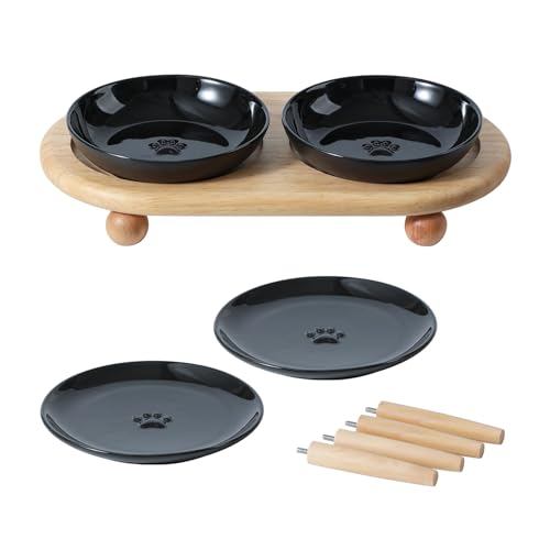 Havniva Raised Ceramics - Gamelle surélevée pour Chat - 2 gamelles pour Nourriture et Eau - avec 2 Supports réglables Anti-étouffement - Anti-Fatigue - Noir