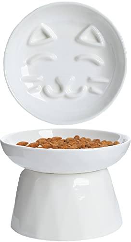 Kopmath Gamelle surélevée pour Chat - Mangeoire Lente en céramique pour Chat - Alimentation Saine pour Aliments humides et secs - Robuste et adhérente - Assiette de Nourriture Puzzle pour Animaux de