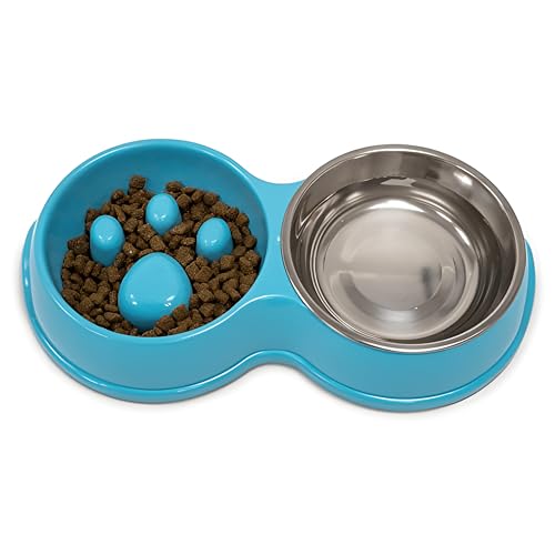 Fur & Bone Gamelle surélevée à Double Alimentation Lente pour Chien avec Fond antidérapant - Gamelle en Acier Inoxydable - Bol surélevé Amovible pour Chat - Bleu