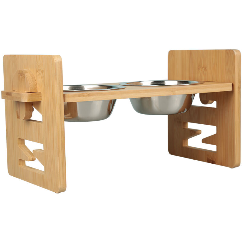 Gamelle Surélevée pour Chien et Chat avec Support Réglable en Bambou et 2 Bols en Acier Inoxydable 40×18×19.5cm - Couleur bois naturel