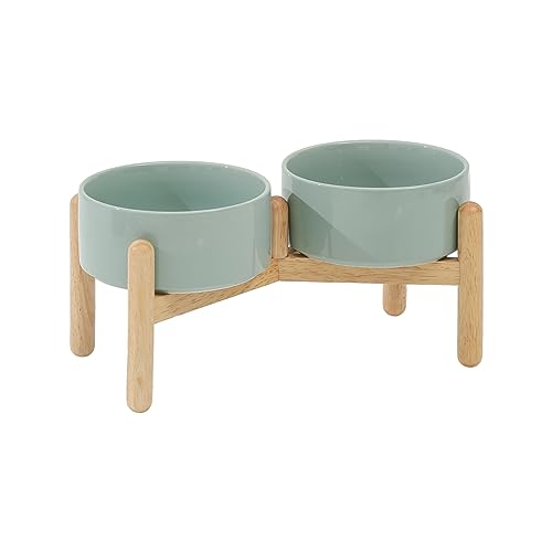 Havniva Gamelle surélevée en céramique de 15,5 cm avec Support pour Chiens de Petite et Moyenne Race, gamelle de Nourriture et d'eau pour Animaux domestiques (Double Bol avec Support, Vert Clair, 800
