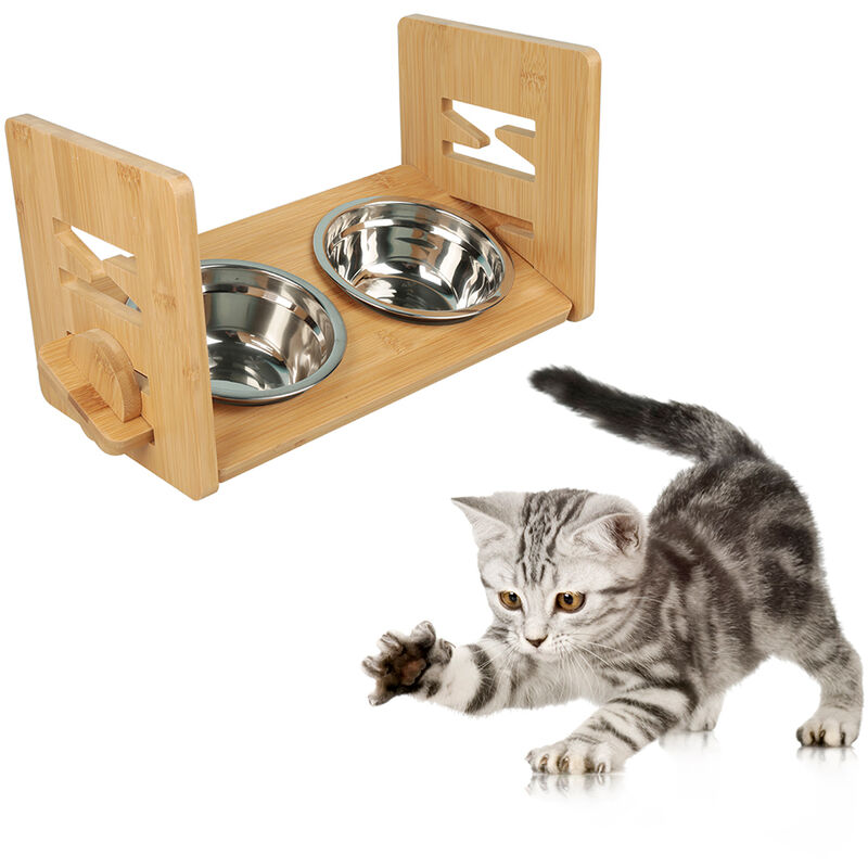 Dyhf - Gamelle Surélevée Chien Chat, Hauteur Réglable, avec 2 Acier Inoxydable Bols, la Taille: 3.5-12cm
