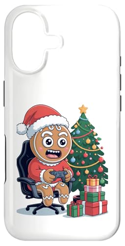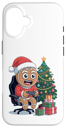 Gingerbread Gaming Chair Christmas Tree Cool Gamer Coque pour iPhone 16
