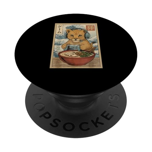 Lionceau Amusant Ramen Gamer Rétro Japonais Gamer Animal PopSockets PopGrip Adhésif
