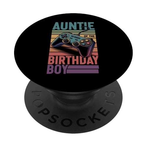 Auntie of The Birthday Boy Vintage Gamer Assorti Anniversaire PopSockets PopGrip Adhésif