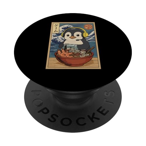 Ramen Gaming Pingouin Rétro Japonais Anime Gamer Animal Lover PopSockets PopGrip pour MagSafe