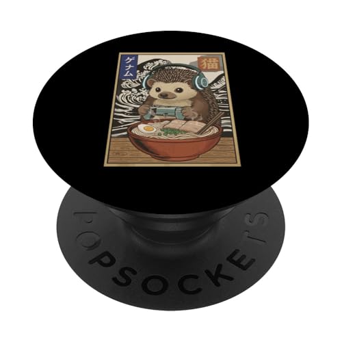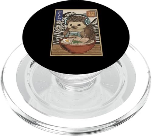 Hérisson Ramen Rétro Mignon Anime Japonais Gamer Animal Gamer PopSockets PopGrip Adhésif