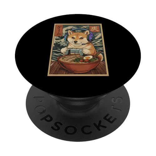 Chien rétro Japonais Kawaii Gamer Funny Ramen Gaming Shiba Inu PopSockets PopGrip Adhésif
