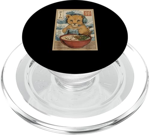 Lionceau Amusant Ramen Gamer Rétro Japonais Gamer Animal PopSockets PopGrip pour MagSafe