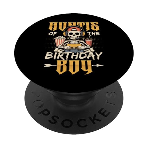 Auntie of The Birthday Boy Squelette Gamer Assorti Anniversaire PopSockets PopGrip Adhésif