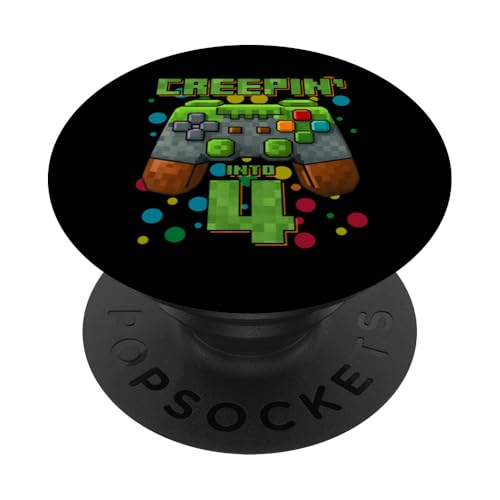 It's My 4th Birthday Boy Gamer Creepin' Into 4 Gamer Pixel PopSockets PopGrip Adhésif