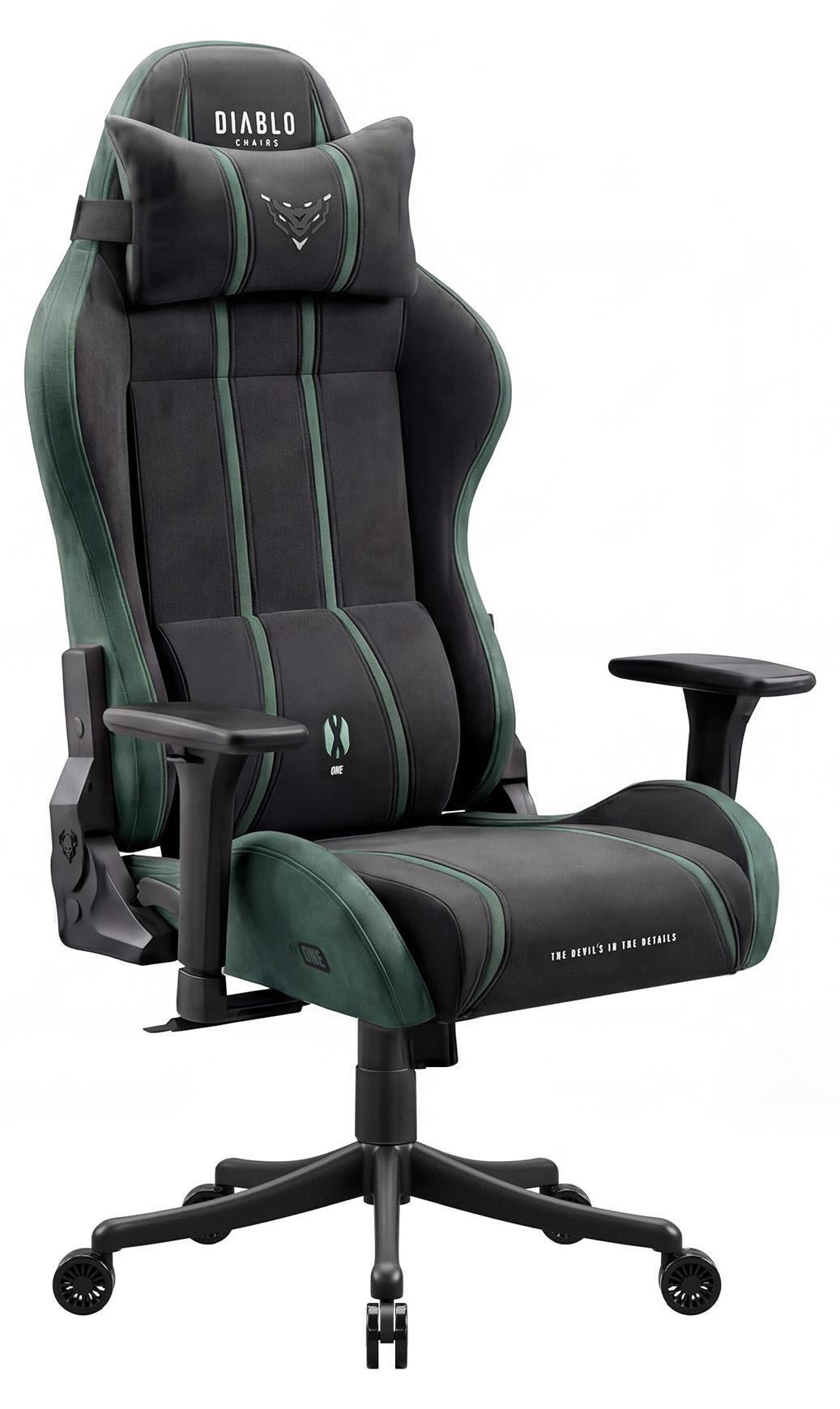 Fauteuil gaming Diablo Chairs X-One 2.0 en tissu, fauteuil de bureau ergonomique, fauteuil pivotant noir et vert, petit modèle