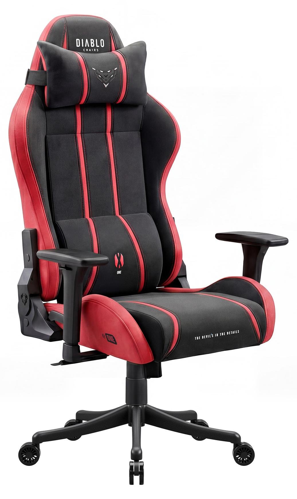 Fauteuil gaming Diablo Chairs X-One 2.0 en tissu, fauteuil de bureau ergonomique, fauteuil pivotant noir et rouge, taille S