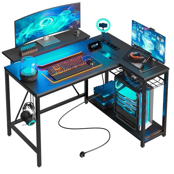 Five Stars® Bureau Gaming en L – 107 x 80 x 76 cm – Bureau Gaming avec Éclairage LED – Carbone Noir – Bureau d’Angle – Gaming Desk