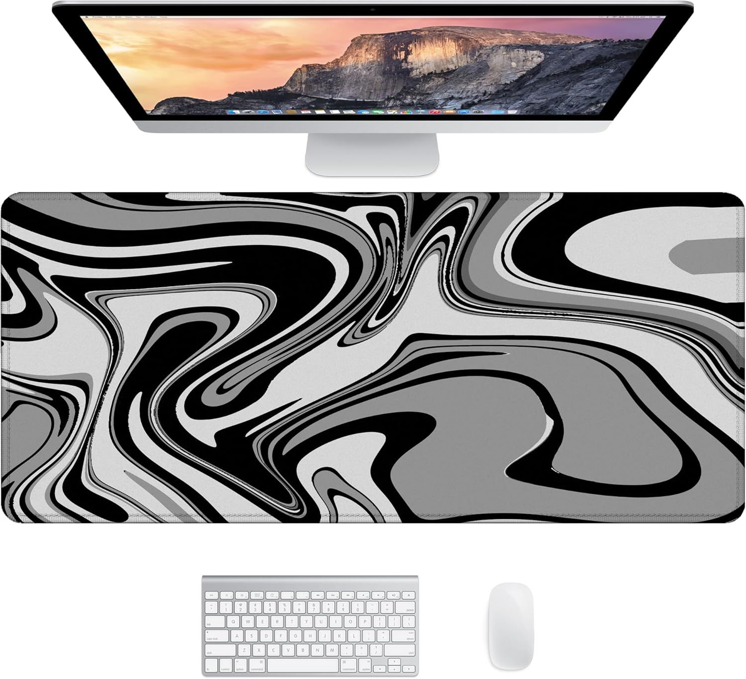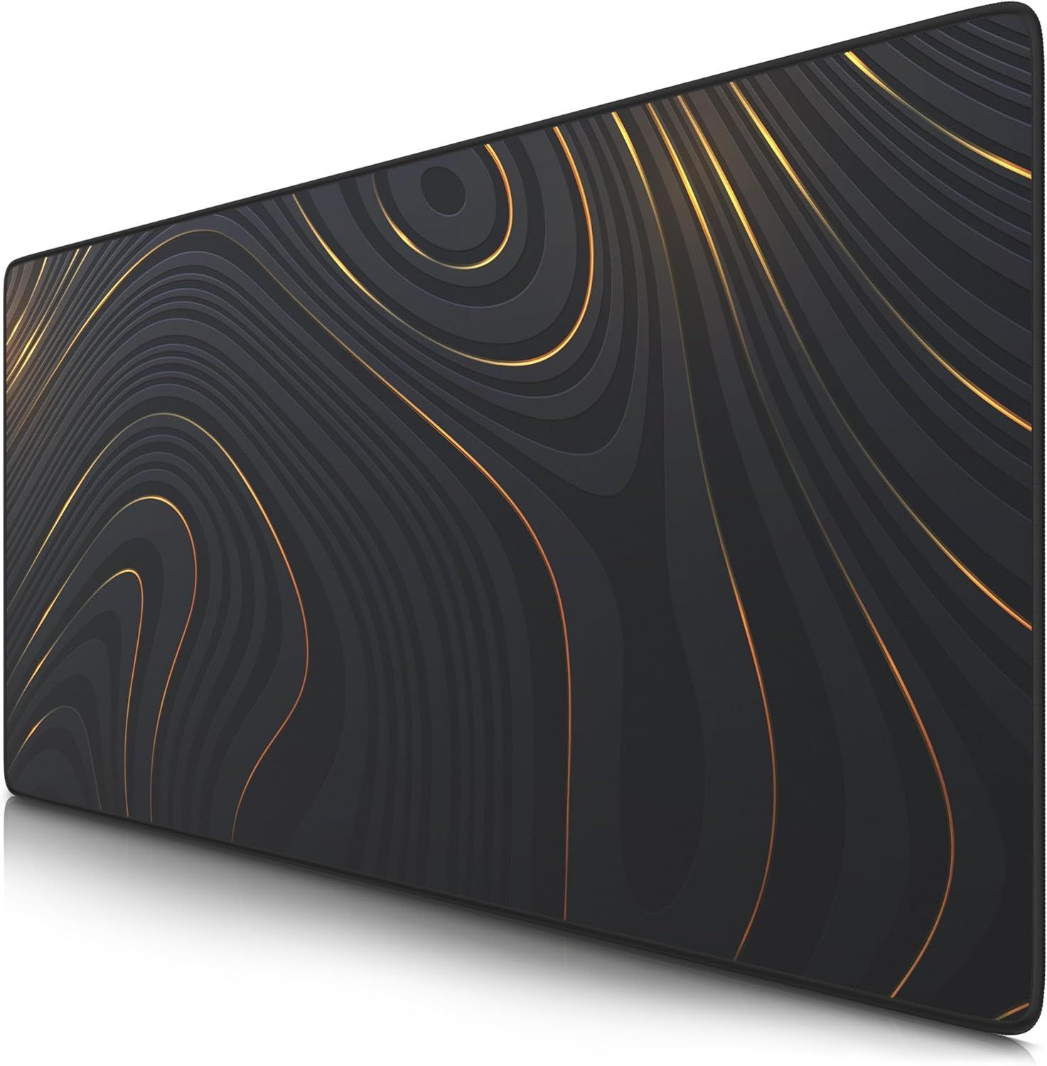 Tapis de Souris Abstrait XXL 1400x600 mm Tapis de Souris Gaming Antidérapant Desk Mat avec Bord Verrouillable, Imperméable Grand Mouse Pad Convient pour Bureau, Maison et Salle de Jeux (Noir) 2S-1003