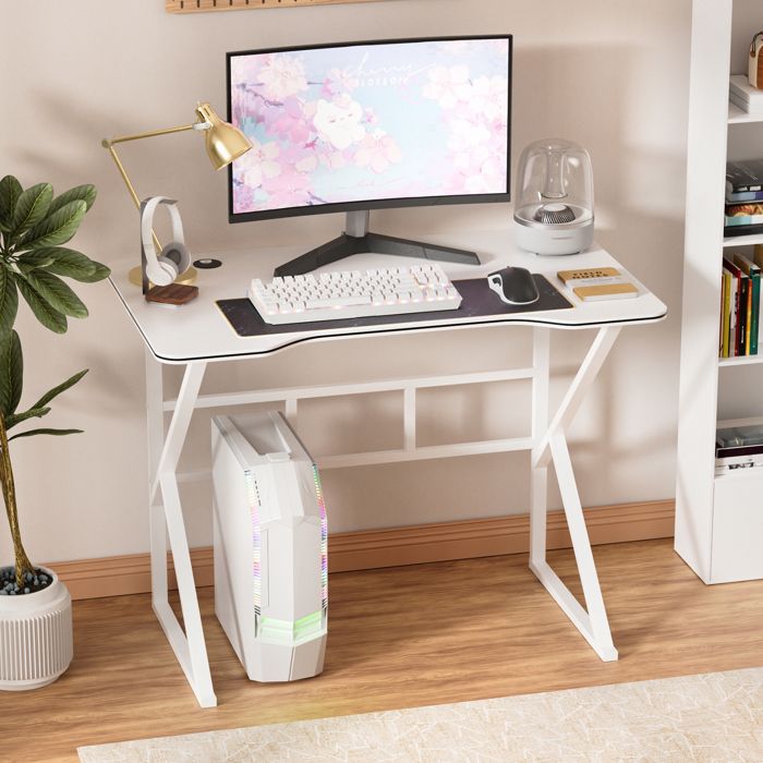 FLASIDU 100x60x74cm Bureau Gaming Bureau Gamer Informatique Ergonomique Table Gaming en Fibre de Carbone Gaming Desk Blanc