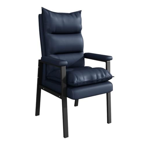 BlueLeatherModernArmchairSoftComfyBackrestNoWheelsBig&TallExecutive ChairIdealforGamingRoom&ReceptionSeating